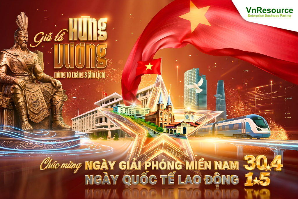 Công Ty Cổ Phần Tài Nguyên Tri Thức Việt Năng – VnResource Corp chân thành cảm ơn Quý Khách hàng, Đối tác đã tin tưởng, đồng hành cùng chúng tôi trong suốt thời gian qua. VnResource xin thông báo lịch nghỉ Lễ Giỗ Tổ Hùng Vương 10/03 (Âm Lịch), Giải Phóng Miền Nam 30/4 và ngày Quốc Tế Lao Động 1/5 năm 2026 như sau: