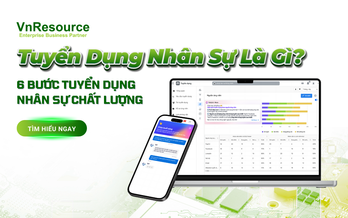 24/12/2025Tuyển dụng nhân sự là quá trình không thể thiếu trong việc xây dựng và phát triển một tổ chức thành công. Để tìm kiếm và thu hút những ứng viên có kỹ năng, kinh nghiệm và tiềm năng phù hợp với vị trí công việc luôn đòi hỏi doanh nghiệp cần có sự chuẩn bị kỹ lưỡng. Vậy tuyển dụng nhân sự là gì? Quy trình các bước tuyển dụng nhân sự hiệu quả và chất lượng nhất? Hãy cùng VnResource khám phá ngay bài viết dưới đây! 1. Tuyển dụng nhân sự là gì? Tuyển dụng nhân sự là quá trình… -